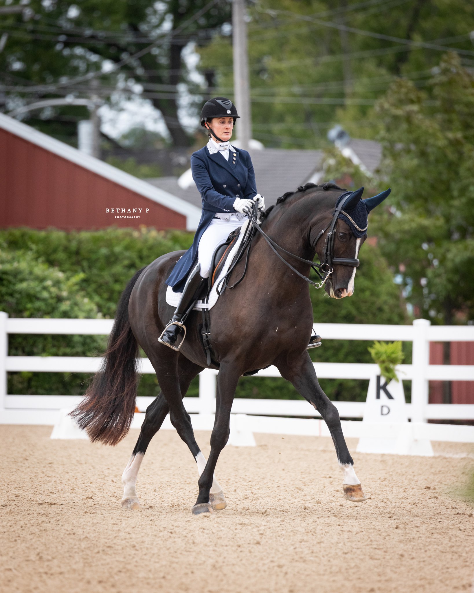 “Hansi” came into Siobhan’s life in early 2020. Since then, he has progressed from Third Level to Grand Prix, scoring over 70% many times at multiple levels, and earning many high score awards along the way. He is currently in his third year competing at the Grand Prix level.